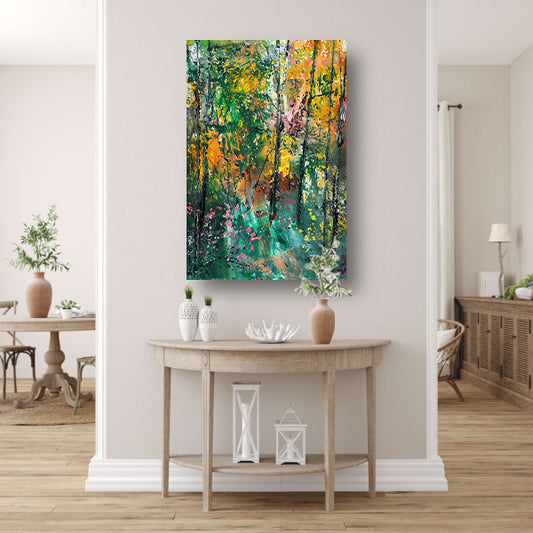 Vibrant Abstract Forest Scene in Rich Colors canvas met baklijst