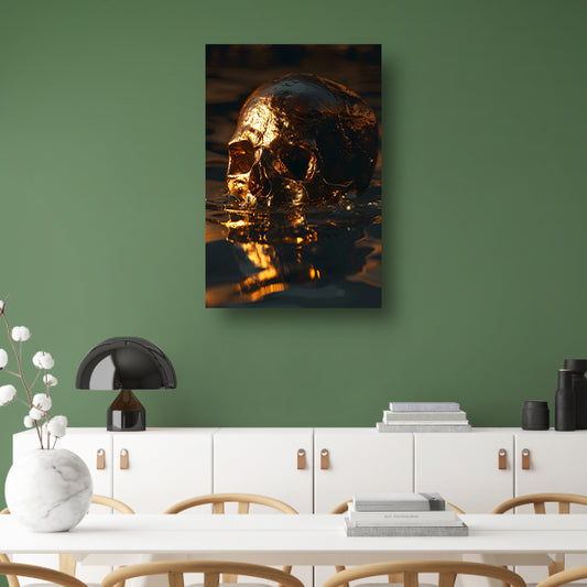 Mystieke Gouden Schedel Reflectie in Donker Water canvas met baklijst