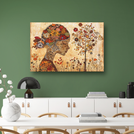 Vrouwelijk Profiel met Natuurlijke Elementen canvas met baklijst