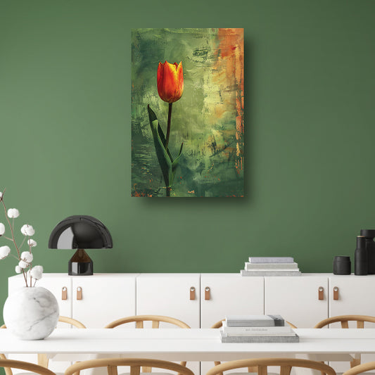 Oranje tulp met abstracte achtergrond canvas met baklijst
