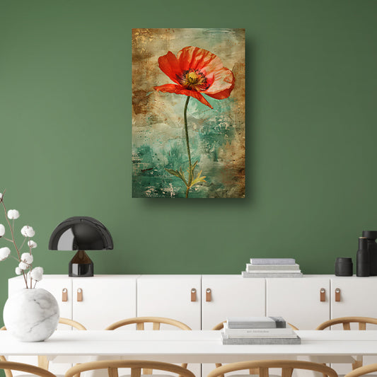 Prachtige rode papaverbloem op rustieke achtergrond canvas met baklijst