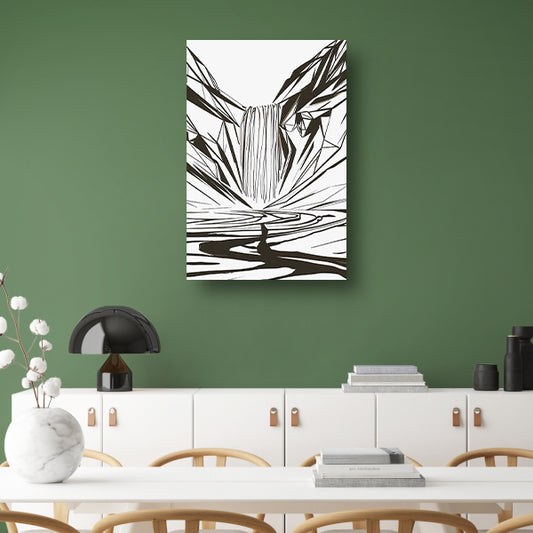 Minimalistische Abstracte Waterval in Lijnkunst canvas met baklijst