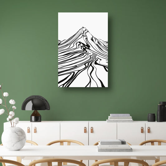 Eenvoudige bergcontouren in zwart en wit canvas met baklijst