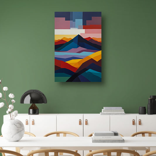 Geometrische Abstractie van een Berglandschap canvas met baklijst