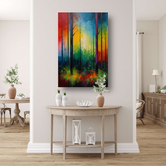 Betoverend Kleurrijk Boslaan Kunstwerk canvas met baklijst