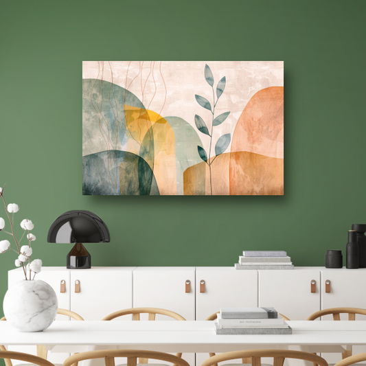 Minimalistische natuur in abstracte aardetinten canvas met baklijst