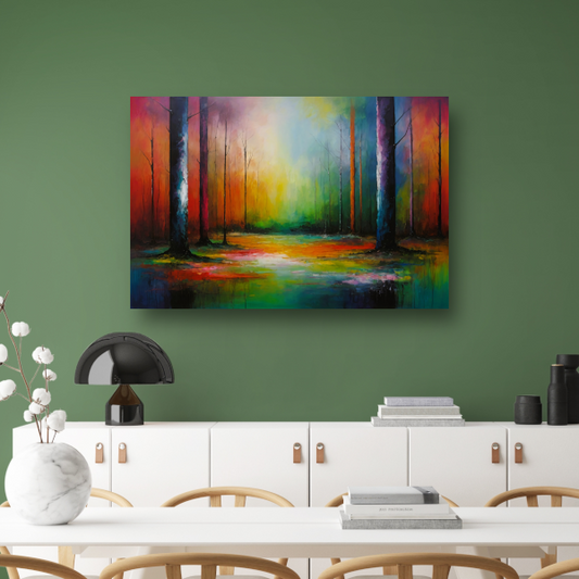 Betoverend Kleurrijk Impressionistisch Boslandschap canvas met baklijst