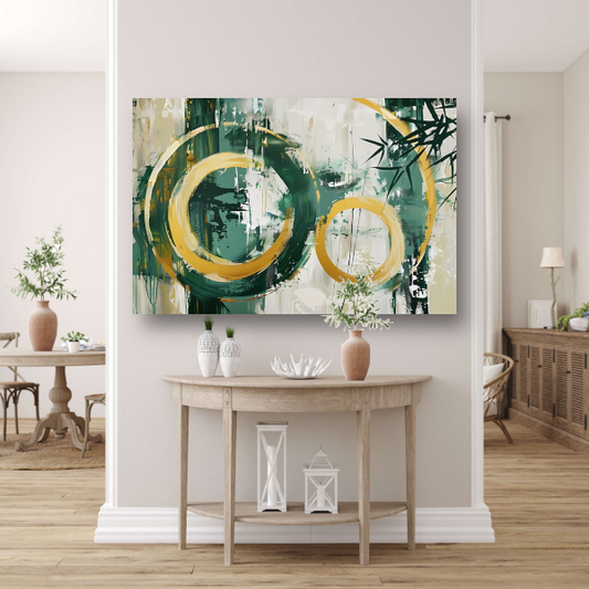 Abstracte Dans van Gouden Cirkels en Groen canvas met baklijst