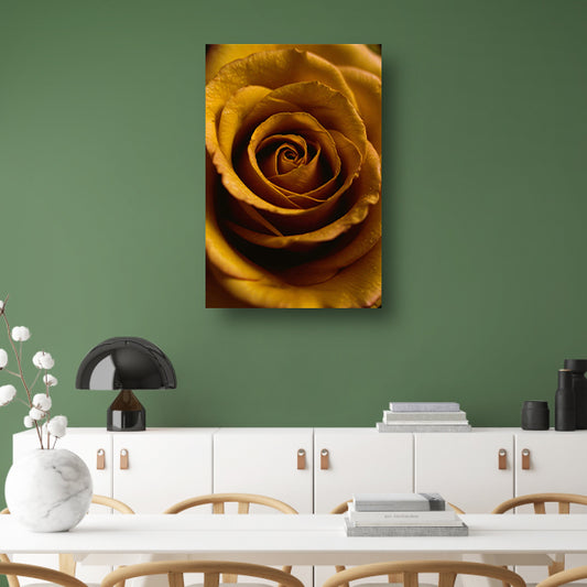 Gouden ochtenddauw op gele roos canvas met baklijst