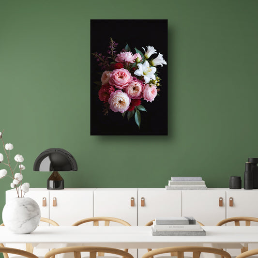 Gevarieerd bloemenboeket tegen donkere achtergrond canvas met baklijst