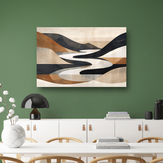 Abstracte bergen in aardetinten minimalistisch design canvas met baklijst