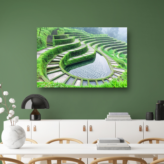 Symmetrische Trappen en Reflecterend Water canvas met baklijst