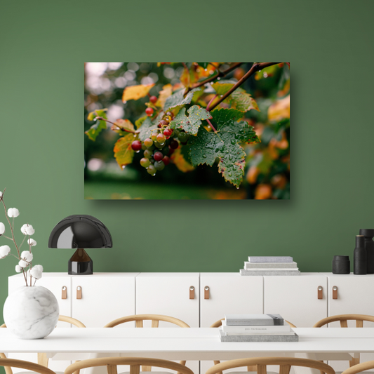 Druiventros met dauw in de herfstochtend canvas met baklijst