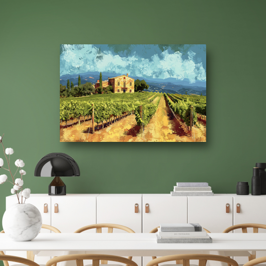 Zonovergoten Italiaanse Wijngaard met Huis canvas met baklijst