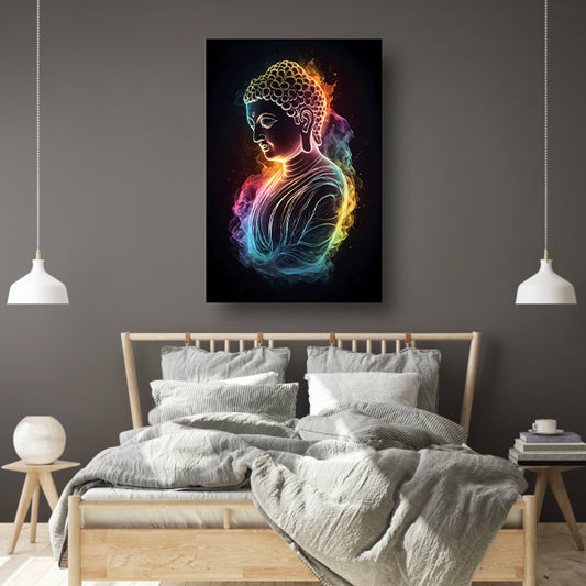 Serene Boeddha in Kleurrijk Spectraal Licht canvas met baklijst