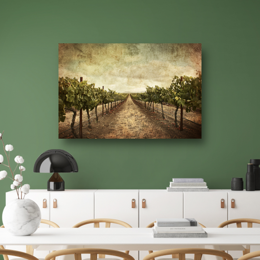 Sepia Wijngaard Landschap met Rijpe Druiven canvas met baklijst