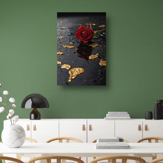 Elegante Rode Roos op Zwart Marmer canvas met baklijst