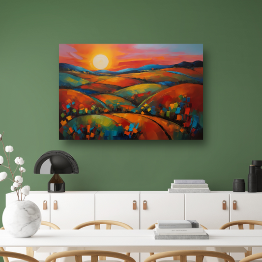 Dynamisch kleurrijk abstract natuurlijk landschap canvas met baklijst
