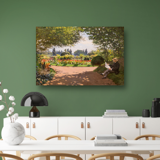 Adolphe Monet in de tuin van Le Coteau in Sainte-Adresse - Claude Monet canvas met baklijst