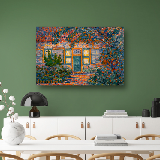 Kleine huis in de zon - Piet Mondriaan canvas met baklijst
