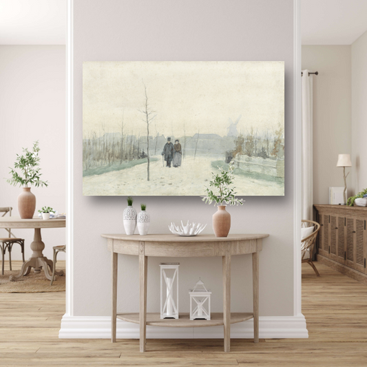 Oud paar in een nieuw aangelegd park - Anton Mauve canvas met baklijst