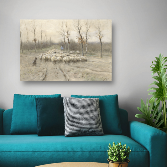 Schapenkudde op de heide bij Laren - Anton Mauve canvas met baklijst
