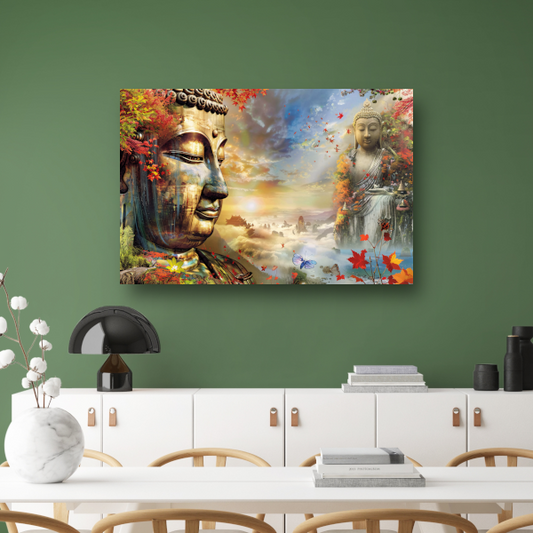 Boeddha in Herfstpracht met Vlinders canvas met baklijst