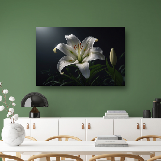 Elegante Witte Lelie met Waterdruppels canvas met baklijst