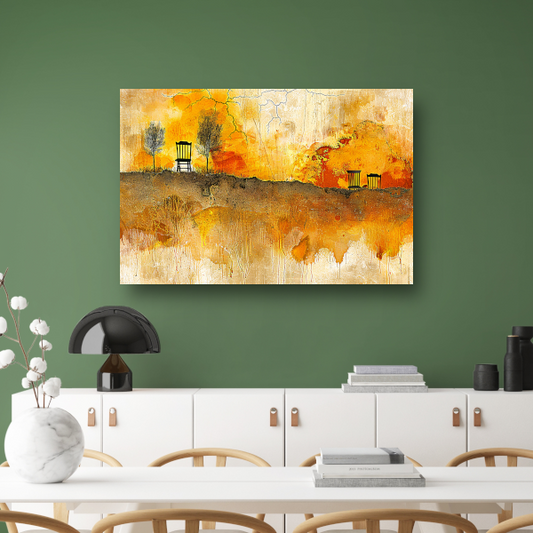 Impressionistisch Landschap met Stoelen canvas met baklijst