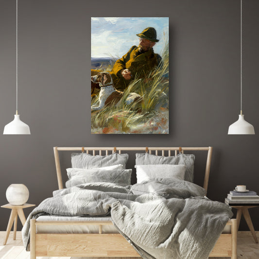 Meesterplanter C.F. Dahlerup met zijn jachthond - Ferdinand Heilbuth canvas met baklijst