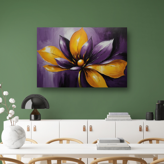 Elegant Purple and Yellow Flower in Bloom canvas met baklijst