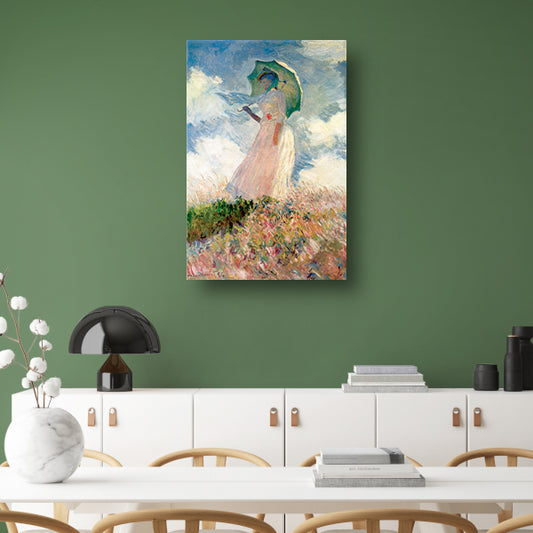 Vrouw met parasol - Claude Monet canvas met baklijst