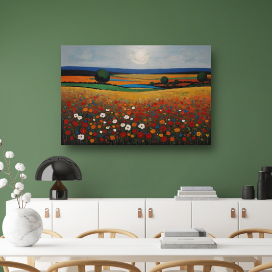Zomerse Bloei in Kleurrijk Impressief Landschap canvas met baklijst