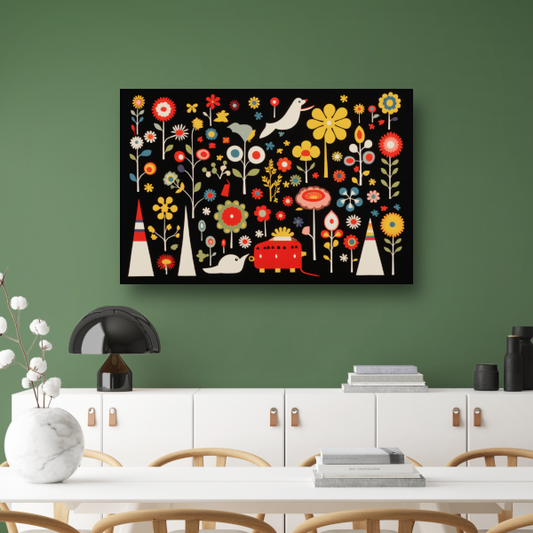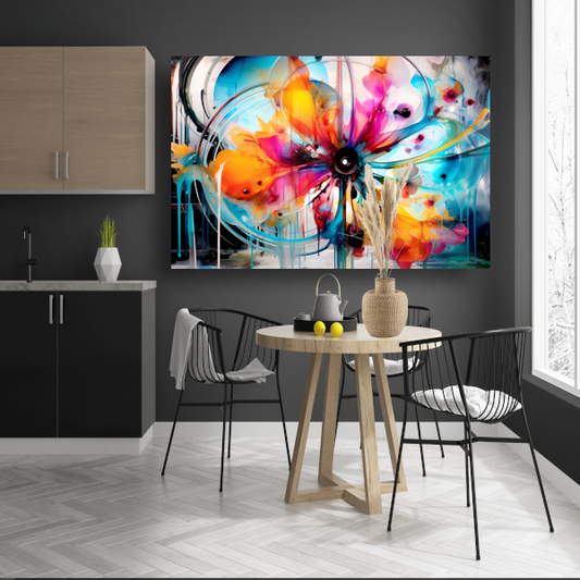 Abstracte bloemencompositie in primaire kleuren canvas met baklijst