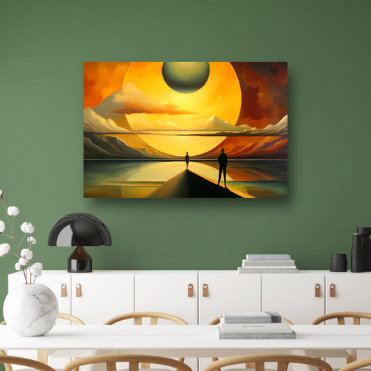 Twee Figuren tegen Kosmische Zonsondergang canvas met baklijst