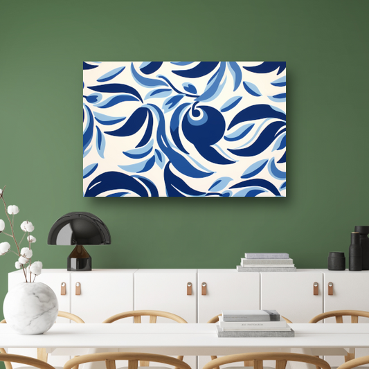 Minimalistische lijnencompositie in blauw en wit canvas met baklijst