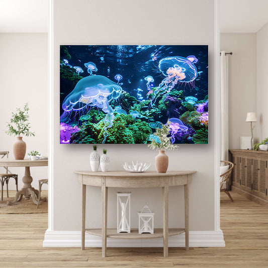 Surrealistische onderwaterwereld met zwevende kwallen poster