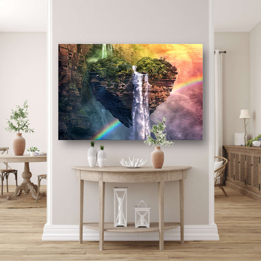 Surrealistische hartvormige rots met watervallen poster