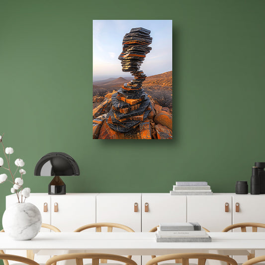 Stenen Gezicht in Uitgestrekt Landschap poster