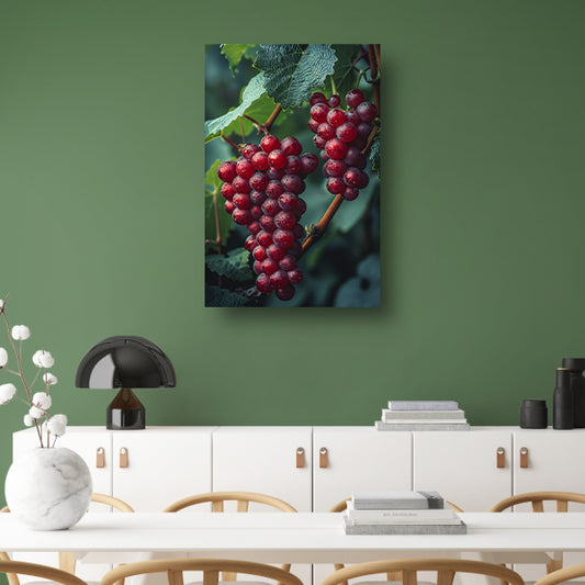 Blauwe druiven aan wijnrank in herfstlicht poster