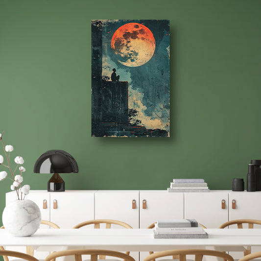 Eenzame figuur onder de rode maan poster