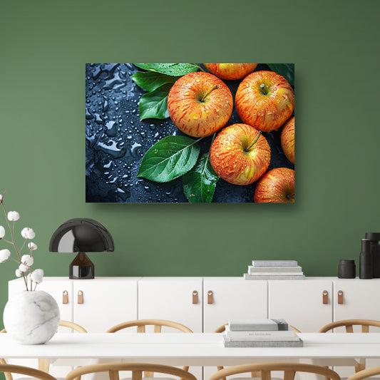 Glanzende appels met waterdruppels poster