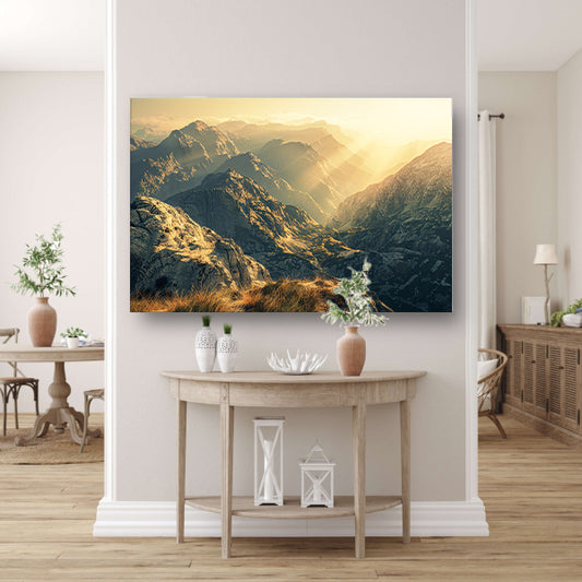 Majestueuze bergen bij zonsopgang in sepia poster