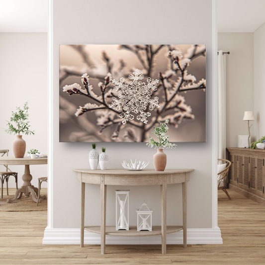 Macro-opname van een sneeuwvlok op takken poster