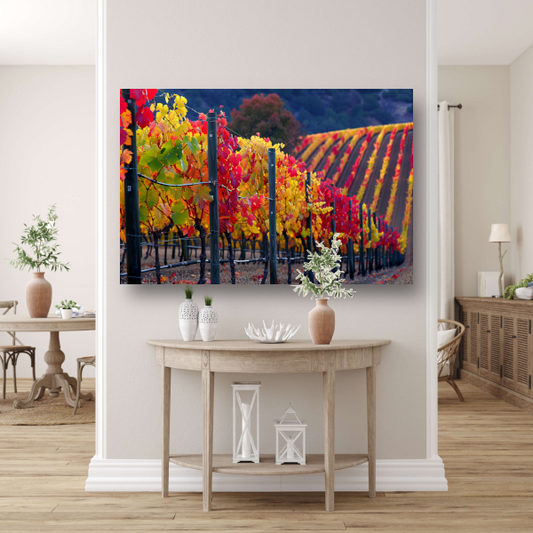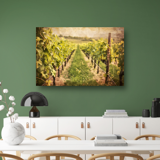 Zonsondergang in de Lush Wijngaard Heuvels poster