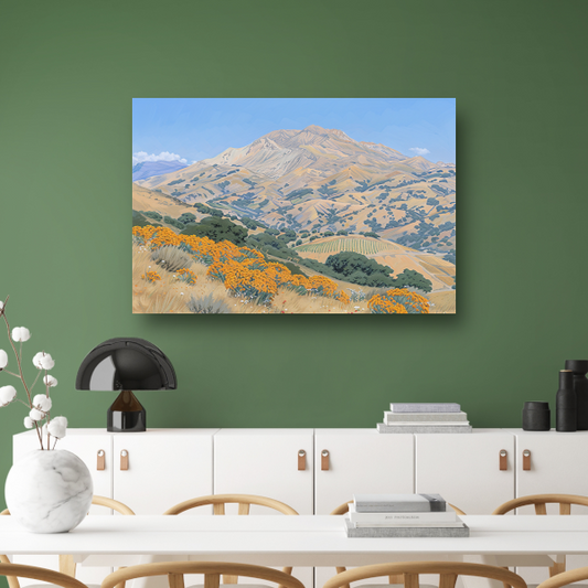 Minimalistisch groen heuvelachtig landschap schilderij canvas