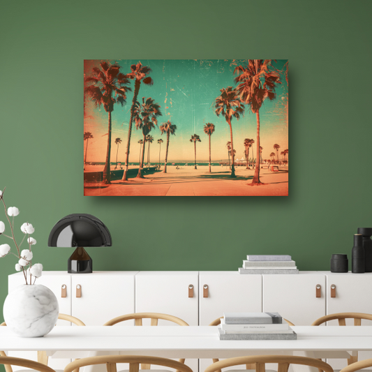 Sepia Palmbomen op een Zonovergoten Strand poster