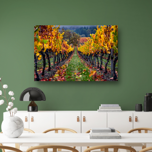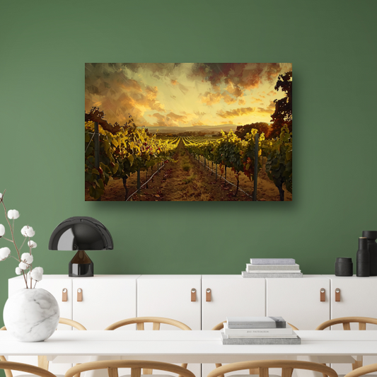 Gouden lichtval over wijngaard bij zonsondergang poster
