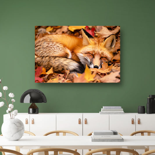 Slapende vos tussen herfstbladeren poster