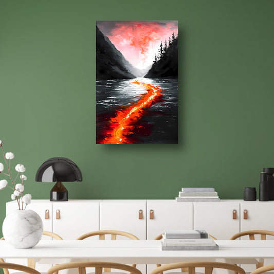Abstracte rivier door een berglandschap canvas